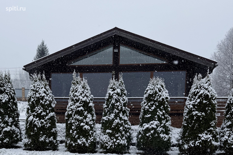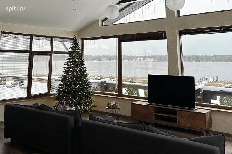 Коттедж с панорамными окнами и баней на берегу озера в Удальцово
