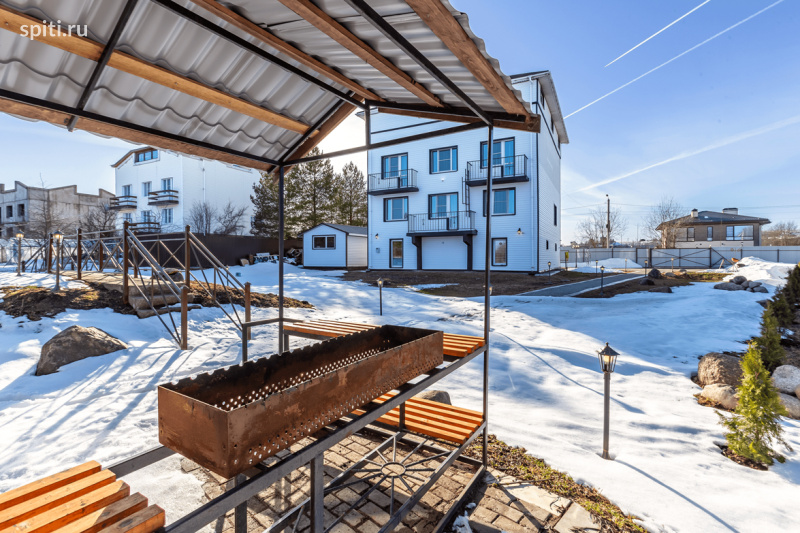 Посуточная аренда коттеджа для праздников в 17 км от Санкт-Петербурга по Таллинскому шоссе. Просторный дом 400 кв.м идеально подойдёт для корпоративов, выпускных, юбилеев и дней рождения. 1 этаж: зал-кухня 40 кв.м в стиле кафе, рассчитанный на 24 персоны, Smart TV, Wi-Fi; кухня с холодильником, плитой, чайником, микроволновкой и посудой; гостевой туалет; СПА-зона с гималайской сауной и комнатой отдыха с душем и туалетом (сауна оплачивается отдельно — 3 000 руб./2 ч, далее 1 500 руб./ч). 2 этаж: 2 спальни с раздельными или двуспальными кроватями, ТВ и ванной; 2 двухкомнатные спальни с кресло-кроватями, диванами, ТВ и общей душевой. 3 этаж: аналогичная планировка — 2 спальни и 2 двухкомнатные спальни с ванными. 4 этаж: зал 100 кв.м для торжеств до 40 гостей, столы, стулья, 5 раскладных диванов, ТВ, музыкальная аппаратура; кухня с техникой и посудой; 2 санузла. На участке 20 соток: открытая зона отдыха, застеклённая беседка (4 000 руб./сутки), крытая мангальная зона (4 000 руб./сутки, включены угли, розжиг, шампура, решётки и уборка), качели, мостик, парковка на 6 авто. Рядом — конноспортивный клуб (3 мин пешком), всесезонный курорт «Туутари-Парк» (15 мин пешком), магазин «Пятёрочка» (10 мин на авто). Коттедж рассчитан на проживание до 32 человек, на дневное мероприятие — до 40 гостей. Стоимость (24 чел., каждый доп. гость — 2 800 руб./сутки или 1 400 руб./день): Выходные: 1 сутки — 60 000 руб., 2 суток — 120 000 руб. Будни (доп. гость — 2 000 руб./сутки или 1 000 руб./день): 1 сутки — 48 300 руб., 2 суток — 96 600 руб.