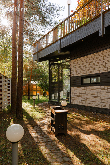 Сдается в аренду панорамный коттедж с садом на крыше, всего в 16 км от КАД по Приморскому шоссе, рядом с поселком Белоостров, во Всеволожском районе. Это стильный и современный дом для тех, кто ценит комфорт, уединение и гармонию с природой. Просторные помещения с панорамными окнами наполняют дом светом и создают ощущение свободы и простора. Общая площадь дома — 380 кв.м. В доме установлены теплые полы, Wi-Fi и система вентиляции. 1 этаж: прихожая; гостиная с мягким диваном, обеденным столом на 4 персоны, интерьерным камином и Smart TV; кухня с островом, холодильником, варочной панелью, духовкой, микроволновой печью, чайником, кофемашиной, посудомоечной машиной и посудой. Спальня с двуспальной кроватью, гардеробом и собственным санузлом с душевой; вторая спальня с двуспальной кроватью; кабинет с письменным столом и диваном; комната отдыха с диваном и велотренажером. Главный санузел оборудован ванной, душевой, финской сауной, биде и туалетом. Есть прачечная со стиральной машиной и отдельный туалет. По согласованию возможно проживание с маленькими воспитанными собачками. На участке 15 соток: терраса 150 кв.м. с плетеной мебелью, креслом-качелей и шезлонгами; на крыше дома — зона отдыха 440 кв.м. с ухоженным садом, шезлонгами и креслами; мангал (шампура предоставляются, уголь и розжиг привозятся с собой); ухоженная освещаемая территория и парковка на 5 автомобилей. По периметру участка установлено видеонаблюдение. Рядом: 1,7 км до магазина и пляжа, 2 км до станции Белоостров, 4 км до экотропы, 21 км до круглогодичного комплекса «Юкки» с горнолыжными трассами, тюбингом, спортивными площадками, пляжем, питомником оленей и баней с бассейном. Коттедж рассчитан на комфортное размещение 4 гостей, максимально — до 8 человек. Стоимость: Выходные (на 1 сутки не сдается) — 2 суток 60 000 руб. Будни: 1 сутки — 30 000 руб., 2 суток — 60 000 руб.