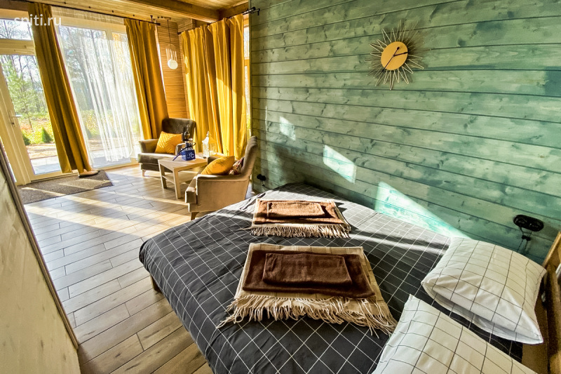 Ваш личный уголок уюта для двоих на берегу озера. Забудьте о городской суете всего в 60 км от Петербурга (пос. Цвелодубово). Это не просто дом, а стильная студия 30 м² с камином, панорамными окнами и тёплыми полами, созданная для романтики и уединения в окружении соснового леса. Почувствуйте гармонию уединения и комфорта: - Камин и панорамные окна создают неповторимую атмосферу. Здесь можно читать книгу, смотреть на огонь и наслаждаться тишиной. - «Шведский стол» в ресторане комплекса — ваши сытные завтраки уже включены в стоимость. - Русская баня с подогреваемой купелью подарит настоящее расслабление после прогулок по лесным тропам. - Ваша личная сказка: закажите ужин в прозрачной сфере на берегу пруда с лебедями — идеальная романтическая история. - Нахимовское озеро с живописным пирсом для фотосессий находится в пешей доступности. Стоимость вашего отдыха (включены завтраки): Будни: — 5 990 ₽/сутки или 11 980 ₽ за 2 дня. Выходные: пятничный вечер — 5 900 ₽, субботний день — 7 500 ₽, а идеальные 2 суток (пт-вс) — 13 490 ₽.