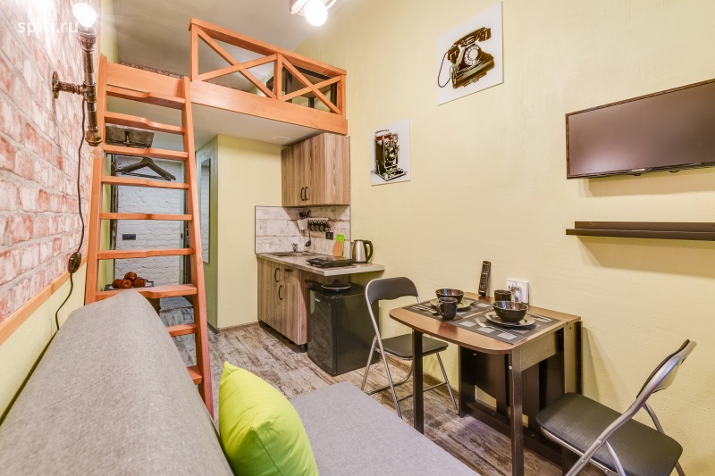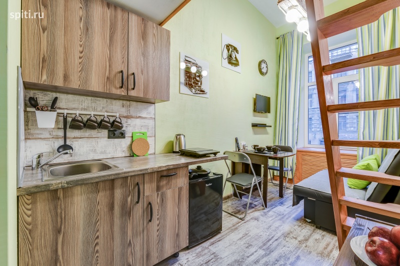 Студия расположена в апарт-отеле "Mafia Loft", который расположен в центре Санкт-Петербурга рядом с Невским проспектом. Входит в сеть уютных апарт-отелей "Сокрома". Отель выполнен в стиле в стиле Чикаго 30-х годов в сочетании с ретро и множеством элементов ручной работы. Все номера - двухуровневые студии. В студии № 3 имеются удобные ортопедические матрасы на втором уровне и мягкие раскладные диваны на первом этаже. Мини-кухня снабжена индукционной плиткой и специальной посудой для быстрого приготовления завтрака и приёма пищи. В студии располагается санузел с душем. Гостям предоставляется wi-fi, фен, чистое постельное бельё, комплект полотенец по количеству гостей, одноразовые тапочки, моющие средства, одноразовые салфетки, бесплатные туалетно-косметические принадлежности, чай, кофе, сахар, соль. В каждой студии есть бесплатные средства для чистки одежды и обуви, дополнительный удлинитель для электрических приборов, зонт и сушилка для обуви. На общей территории расположена гладильная доска, стиральная машина, кофеварка, кулер. По вопросам парковки можно уточнить у администратора. Апарт-отель имеет удобное расположение: 7 мин до метро Владимирская, 15 мин до Московского вокзала. Расстояние до аэропорта Пулково составляет 20 км. Рядом музеи, театры - прелести Культурной столицы! Дворцовая площадь находится в 2,5 км, а музей Эрмитаж — в 2,6 км. Рядом множество кафе, магазинов и туристических мест.