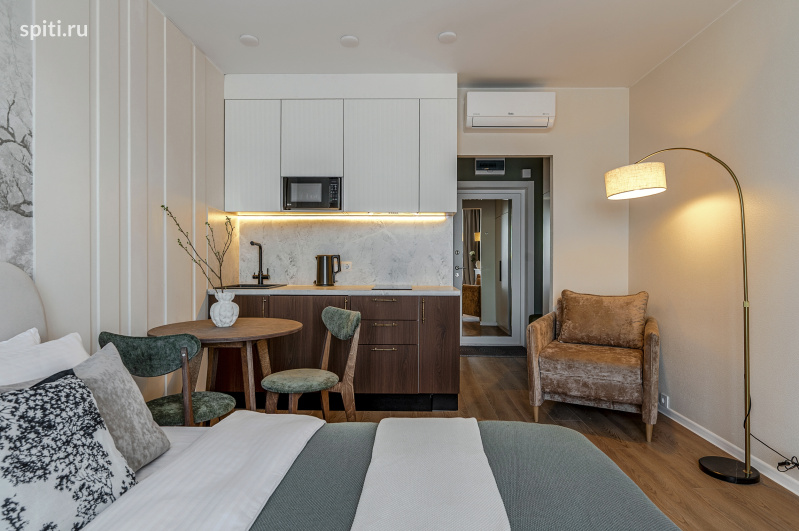 Условия проживания: • Уборка после выезда оплачивается отдельно: 3225 Р • Бесконтактное заселение 24/7 • Заезд после 15:00, выезд до 11:00 • Залог 3 000 Р (возврат на карту в течение 1–3 дней) • Оплата 100% до заселения • Паспорт необходим для регистрации Апартаменты Flat Inn на Лиговском проспекте Стильная студия с дизайнерским интерьером в современном жилом комплексе — идеальный вариант для комфортного проживания в центре Санкт-Петербурга. Уютное пространство продумано до мелочей: спокойные природные оттенки, мягкое освещение, декоративный камин и удобная планировка создают атмосферу отдыха и уюта. Апартаменты подойдут для размещения до 2 гостей. Внутри — полноценная мини-кухня с необходимой техникой, обеденная зона, комфортная кровать и зона отдыха с креслом. Панорамные окна наполняют пространство светом, а кондиционер обеспечивает комфорт в любое время года. Оснащение • двуспальная кровать • кондиционер • телевизор • Wi-Fi • электроплита • микроволновая печь • электрический чайник • минимальный набор посуды для приготовления • современный санузел с душевой • стиральная машина Локация Апартаменты расположены на Лиговском проспекте — удобная транспортная доступность и развитая инфраструктура: • метро «Обводный канал» — в пешей доступности • ТРЦ «ЛиговЪ» и другие торговые центры поблизости • набережная Обводного канала для прогулок • рядом бизнес-центры и офисные пространства • Московский вокзал — быстрый доступ к поездам • удобный выезд к аэропорту Пулково • в районе — кафе, рестораны и продуктовые магазины • Парковка не предоставляется. Компания Flat Inn не организует парковочные места. • При этом рядом с домом есть большое количество бесплатных парковочных мест, доступных при наличии свободных мест. Важно • площадь: 20 м² • размещение: до 2 гостей • формат: студия • санузел: 1 Бесконтактное заселение. Поддержка Flat Inn 24/7. Бронируйте прямо сейчас!
